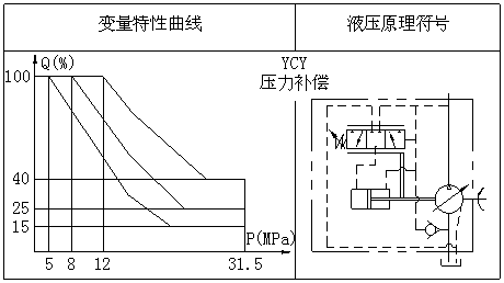 調節流量特性時,可先將限位螺釘擰至上端,根據所需的流量和壓力變化范圍,調節彈簧套,使其流量開始發生變化時的初始壓力符合要求,然后將限位螺釘擰至終級壓力時的流量不再發生變化,其中間的流量與壓力變化關系由泵的本身設計所決定。